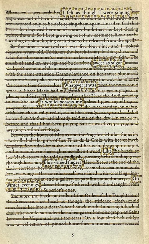 I’m not sure I could ever write something as quirky as this, but the chance to create quirky poems is what really draws me to erasure poetry.